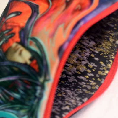 (As these are handmade: zipper color, clip color and interior lining pattern may vary slightly from sample photos, but will always be complimentary tones to artwork.)