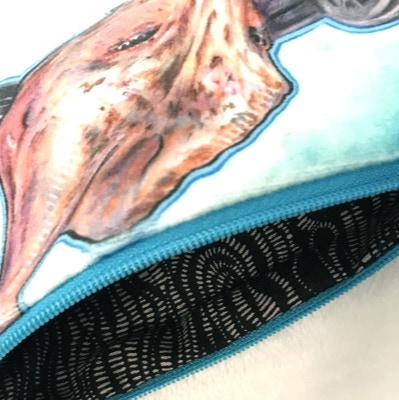 (As these are handmade: zipper color, clip color and interior lining pattern may vary slightly from sample photos, but will always be complimentary tones to artwork.)